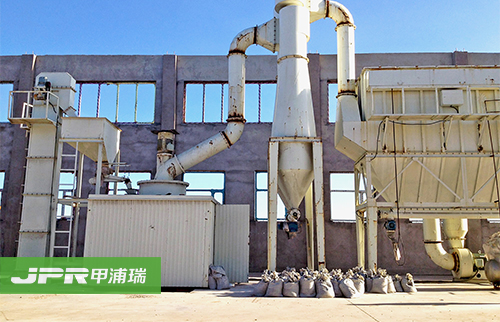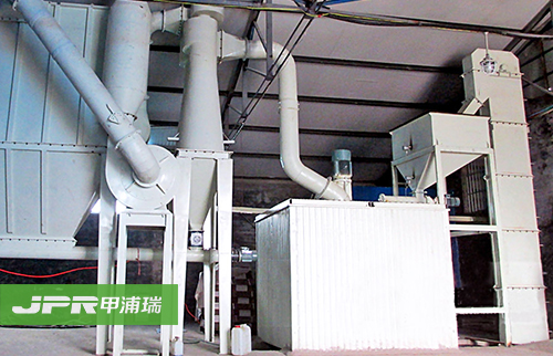物料經(jīng)顎式破碎機(jī)破碎后,由斗式提升機(jī)送至儲料倉,通過電磁振動給料機(jī)把物料均勻連續(xù)地送到主機(jī)進(jìn)行研磨,研磨后的粉末在鼓風(fēng)機(jī)的作用下吹向選粉機(jī)進(jìn)行分 選,分選后的細(xì)粉由管道送至儲料倉,后經(jīng)出料閥輸出即為成品。整套生產(chǎn)線工作過程中氣壓為負(fù),首先鼓風(fēng)機(jī)吹出的空氣伴隨著細(xì)粉經(jīng)管道進(jìn)入儲料倉上部的旋 風(fēng)收集器內(nèi),由回風(fēng)管道返回鼓風(fēng)機(jī),形成空氣循環(huán)利用。其次,集粉器下端裝有鎖粉器,其作用是將外界正壓氣體與集粉器負(fù)壓氣體隔離開,大大提高了產(chǎn)量。再 次,主機(jī)底部殘留的空氣和粉塵通過管道被送到布袋除塵器進(jìn)行過濾,粉塵等雜質(zhì)被布袋除塵器吸附,有效地保護(hù)了環(huán)境。